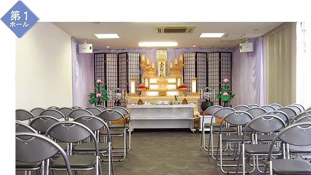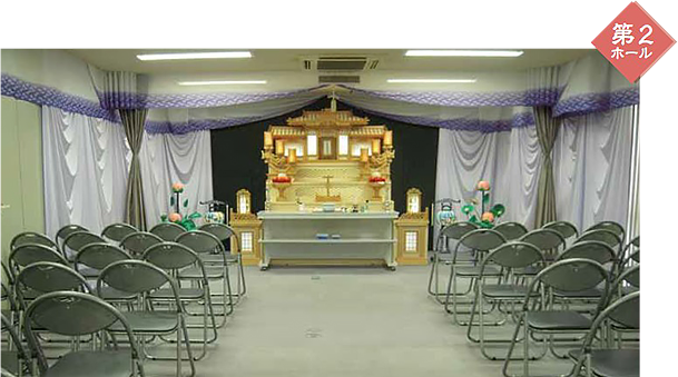 □40席~80席の式場。仏式、神式、無宗派など全宗派の葬儀に対応できます。