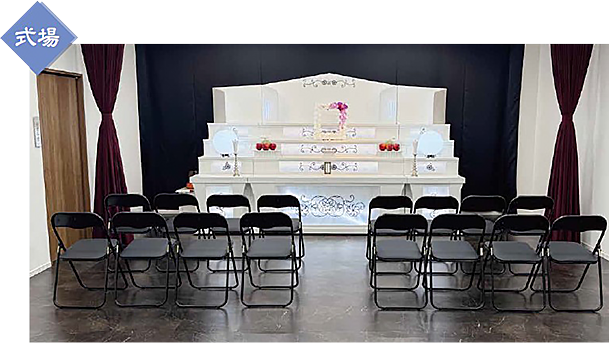 □1席~60席の式場。仏式、神式、無宗派など全宗派の葬儀に対応できます。